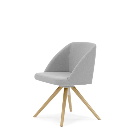 Cadeira cinza com pernas de madeira clara