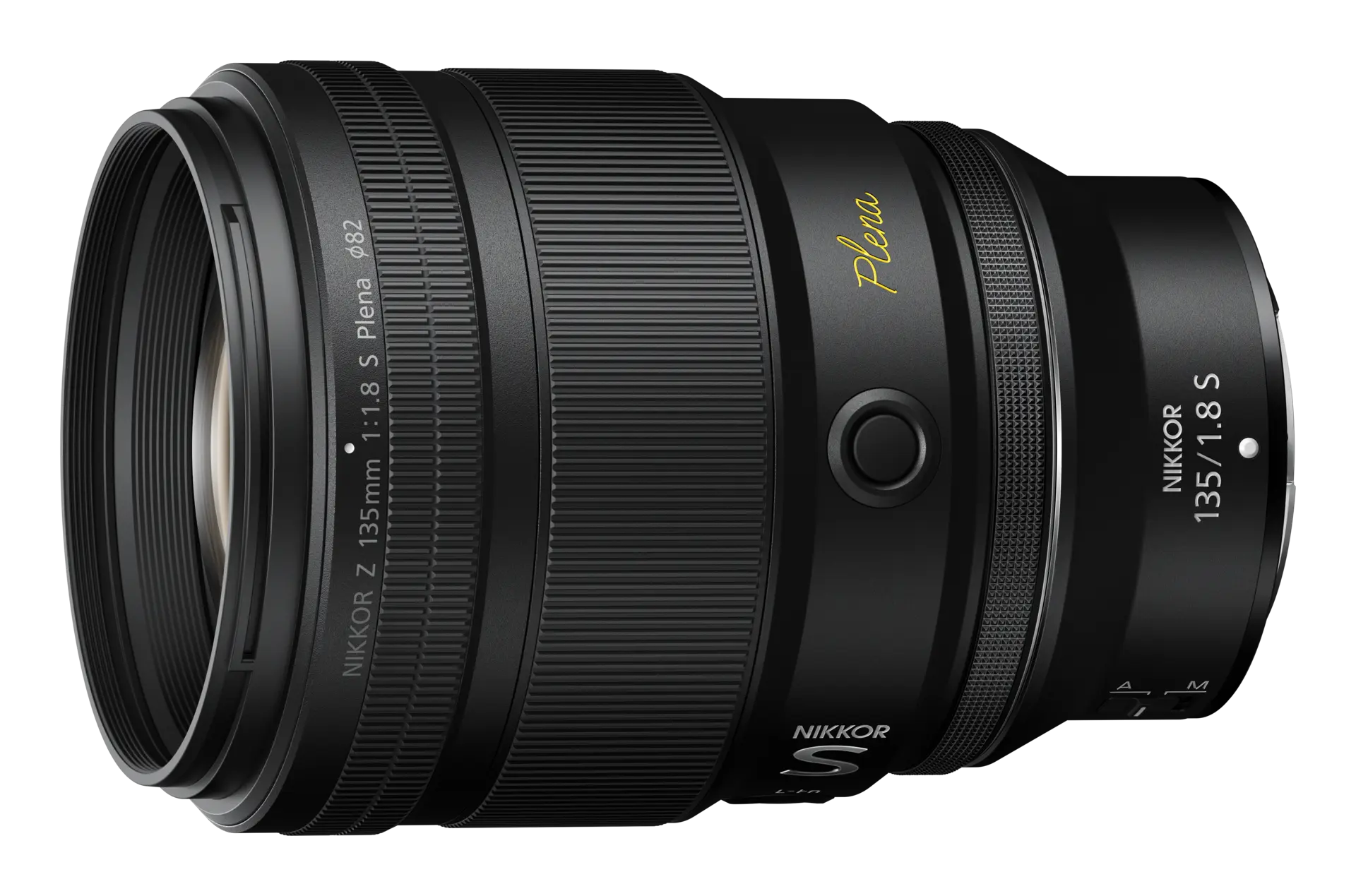 Objetiva de câmara fotográfica NIKKOR Z 35mm 1:1.8 S preta com detalhes em amarelo e branco